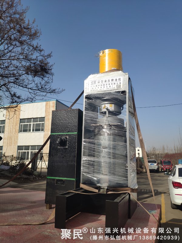 新疆和田地區策勒縣的60MPa(300噸壓力)新型全自動液壓核桃榨油機發貨。